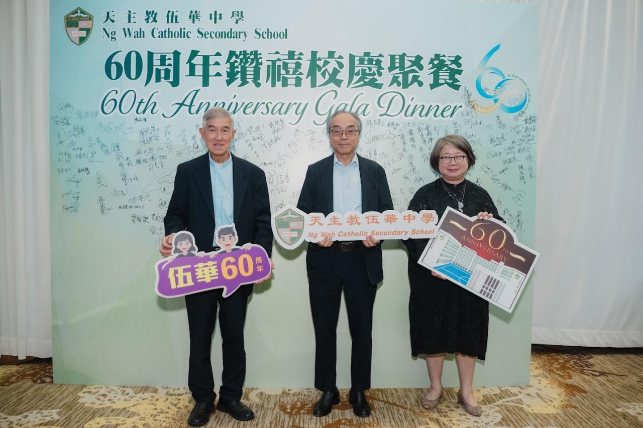 20251025日,天主教伍華中學於九龍灣百樂金宴國際宴會廳,舉行了慶祝學校成立60周年的鑽禧晚宴。宴會吸引眾舊校長老師、校友、教職員及家長們的踴躍參加。整晚會場笑歡洋溢,彼此齊聚一堂,共同回顧我校的歷史與成就。