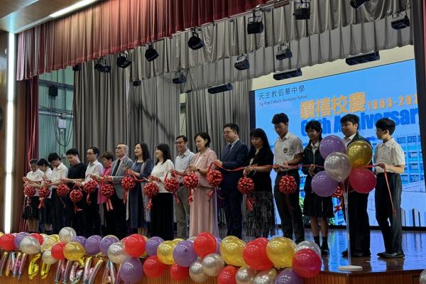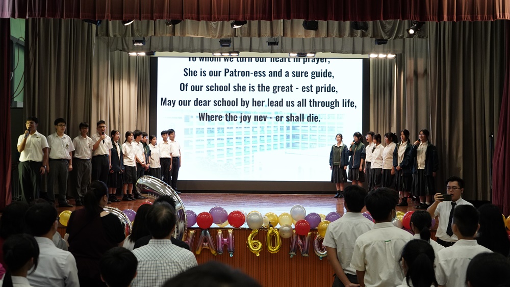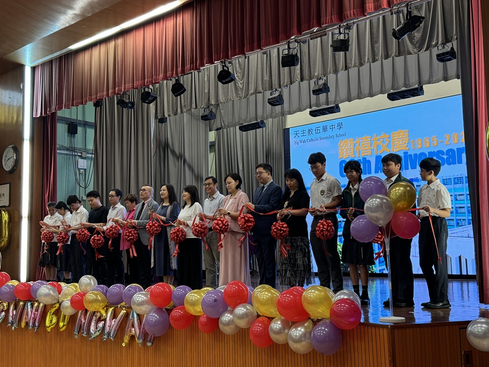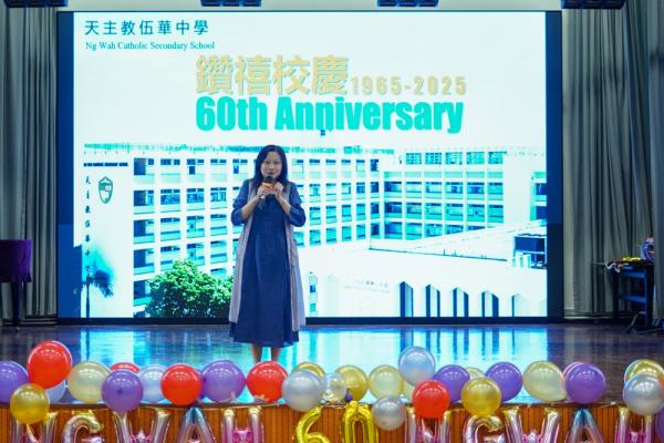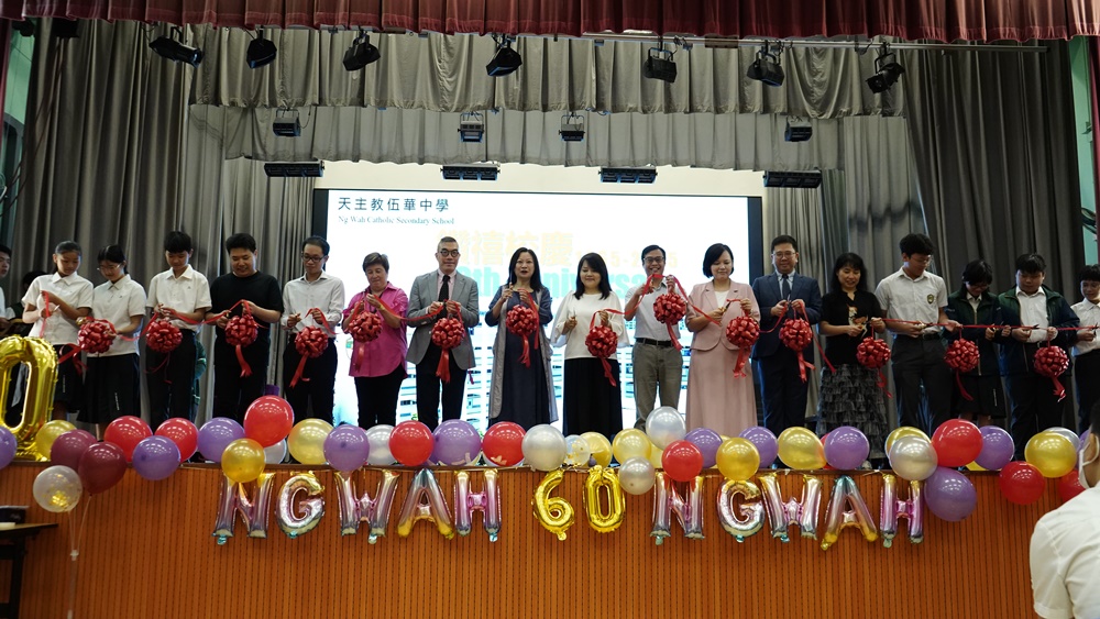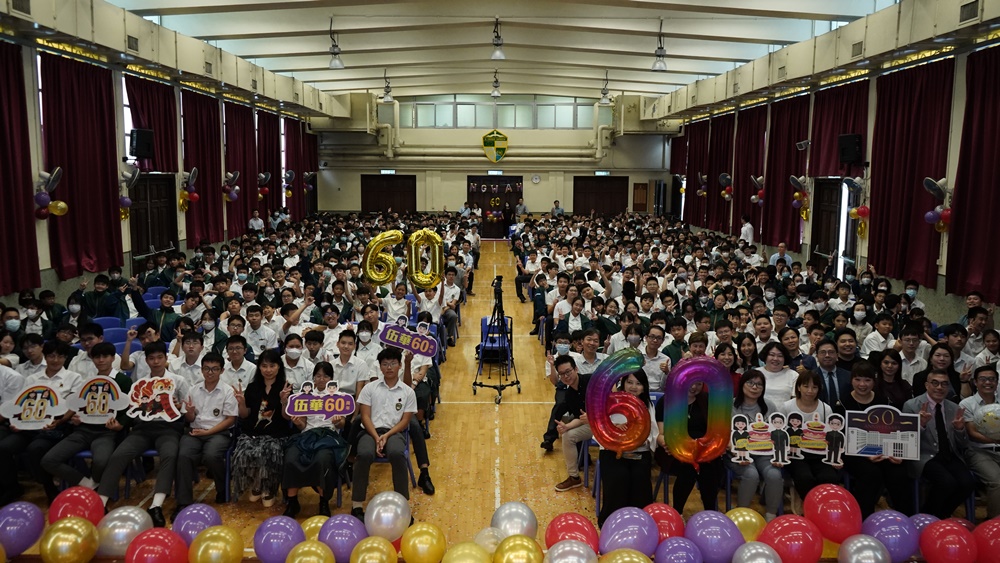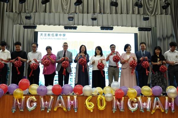本年乃天主教伍華中學創校60周年,為慶祝此重要日子,全體師生於2024年9 月24日齊聚禮堂,為一系列校慶活動舉行簡單而隆重之啟動儀式。師生們藉伍華歷史短片回顧我校發展歷史,司儀亦介紹將會舉辦之慶祝活動。隨著李宛儀校長率眾家長、老師、學生會以至級社代表的剪綵儀式,校慶活動正式開始。