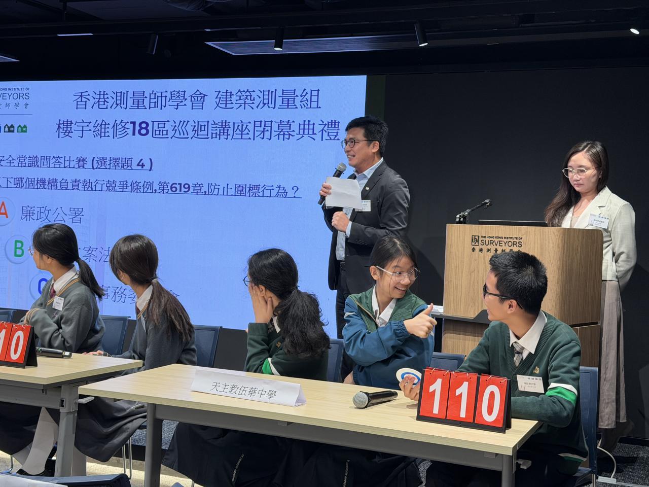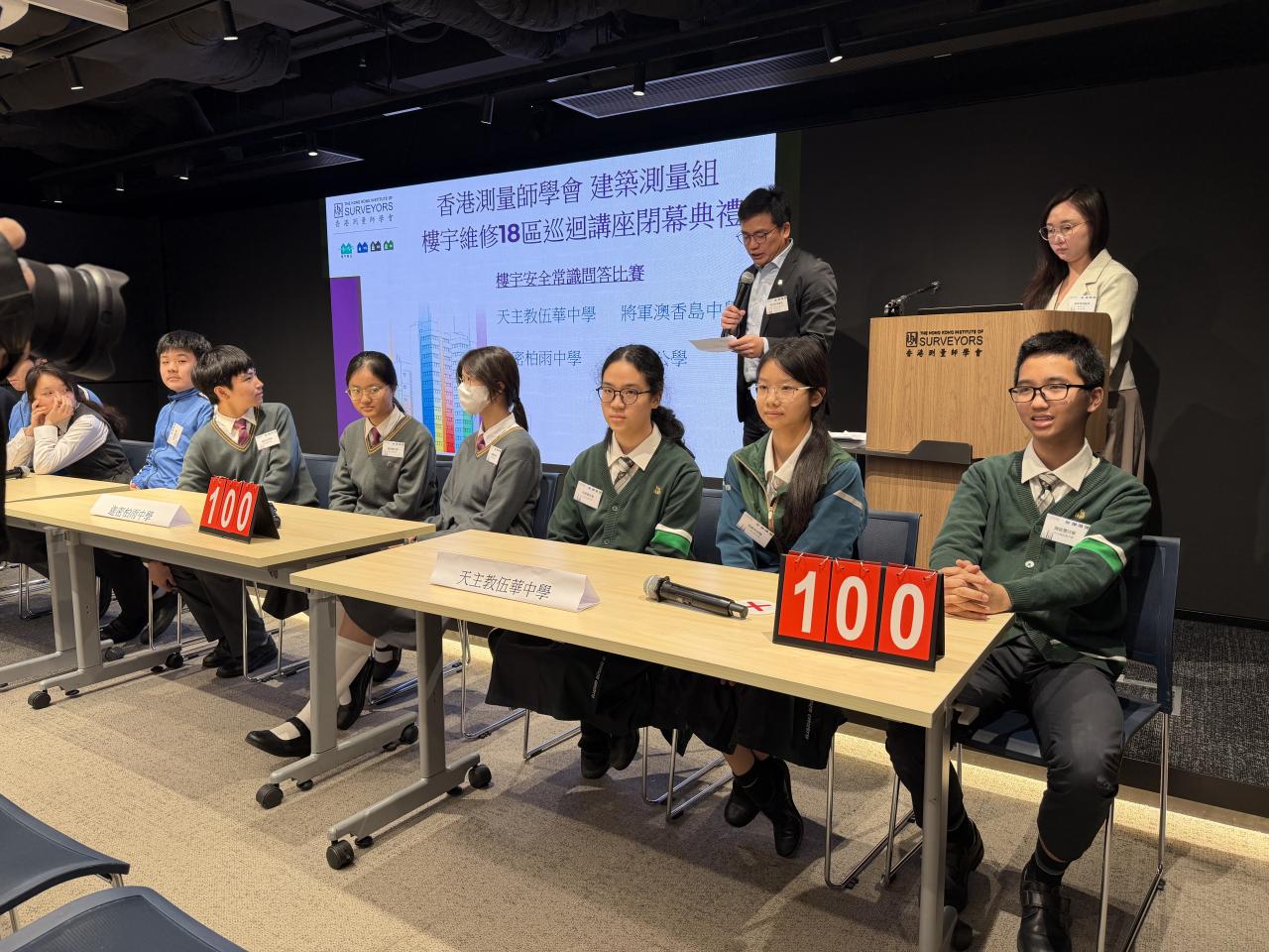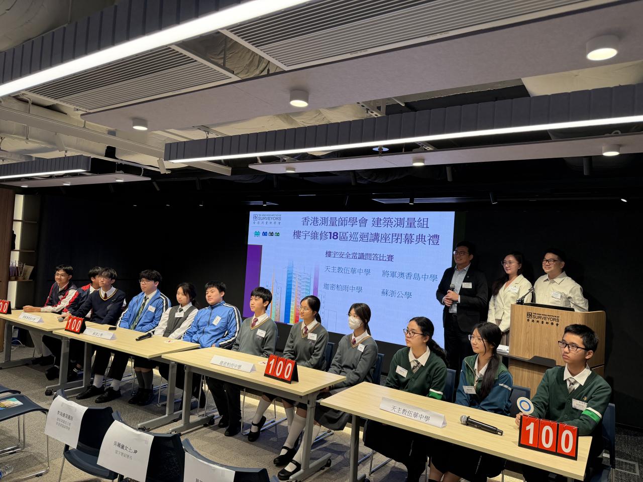 本校學生日前參與由香港測量師學會舉辦的《18區樓宇安全常識問答比賽》,透過活動認識測量師工作、加深對樓宇安全的認識,讓他們明白維護社區安全的重要性。三位同學最終榮獲亞軍,獲獎的學生包括: