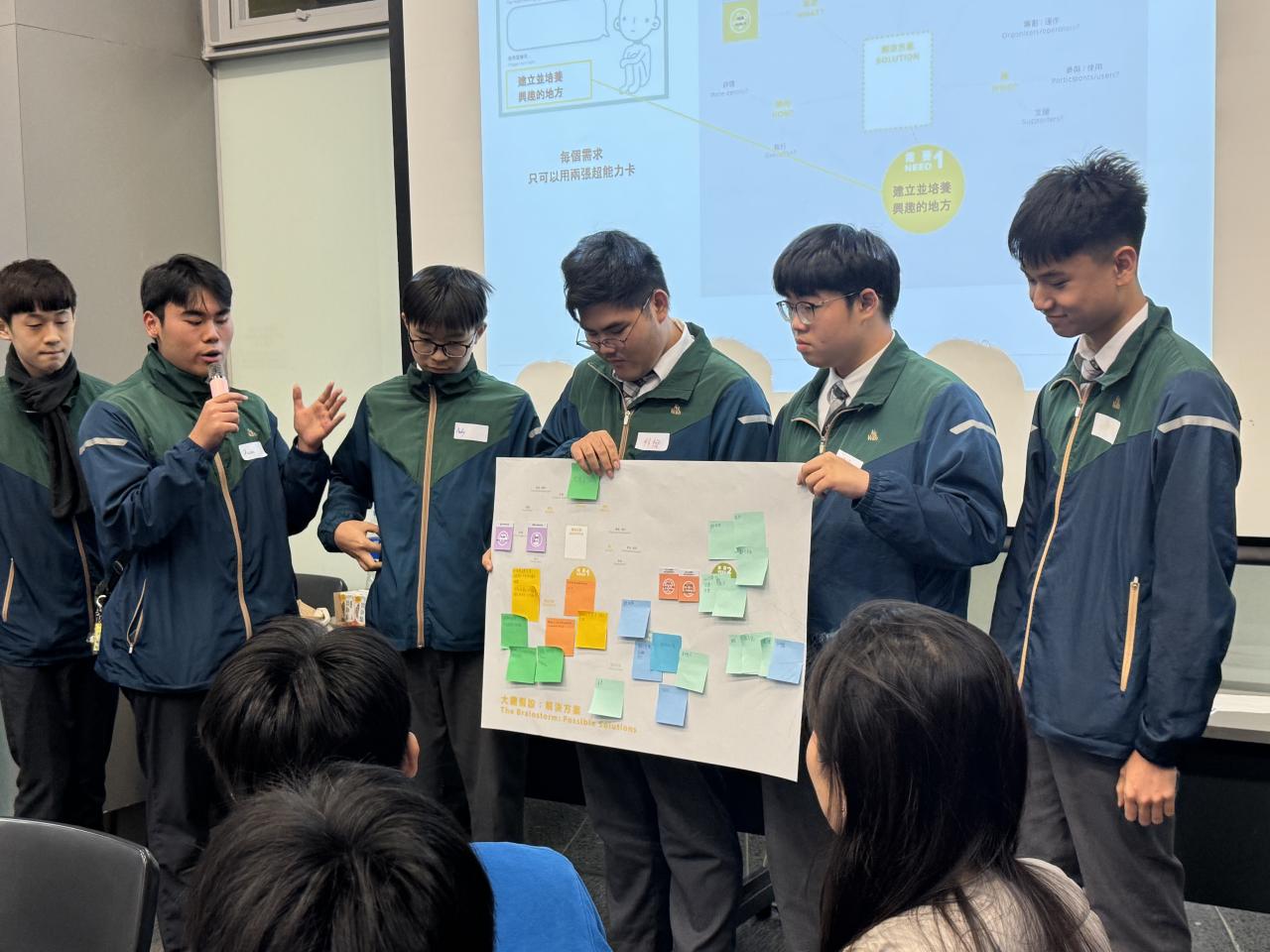 2024-12-01 為了讓同學學習如何在校內發揮創意思維,共建寫意空間, 本組安排了輔導組長、領袖生代表、學生會代表、級社代表及生涯規劃代表參與由賽馬會平行心間計劃舉辦的「寫意空間」工作坊。 在工作坊中,同學需要反思在日常生活中遇到的「痛點」,並以此為基礎, 與其他參與者共同建構能夠讓同學放鬆心情,保持精神健康的寫意空間。 透過聆聽他人的需要,與他人交流意見,同學們明白維持精神健康的重要性, 並了解如何照顧他人的精神健康,獲益良多。 活動剪影