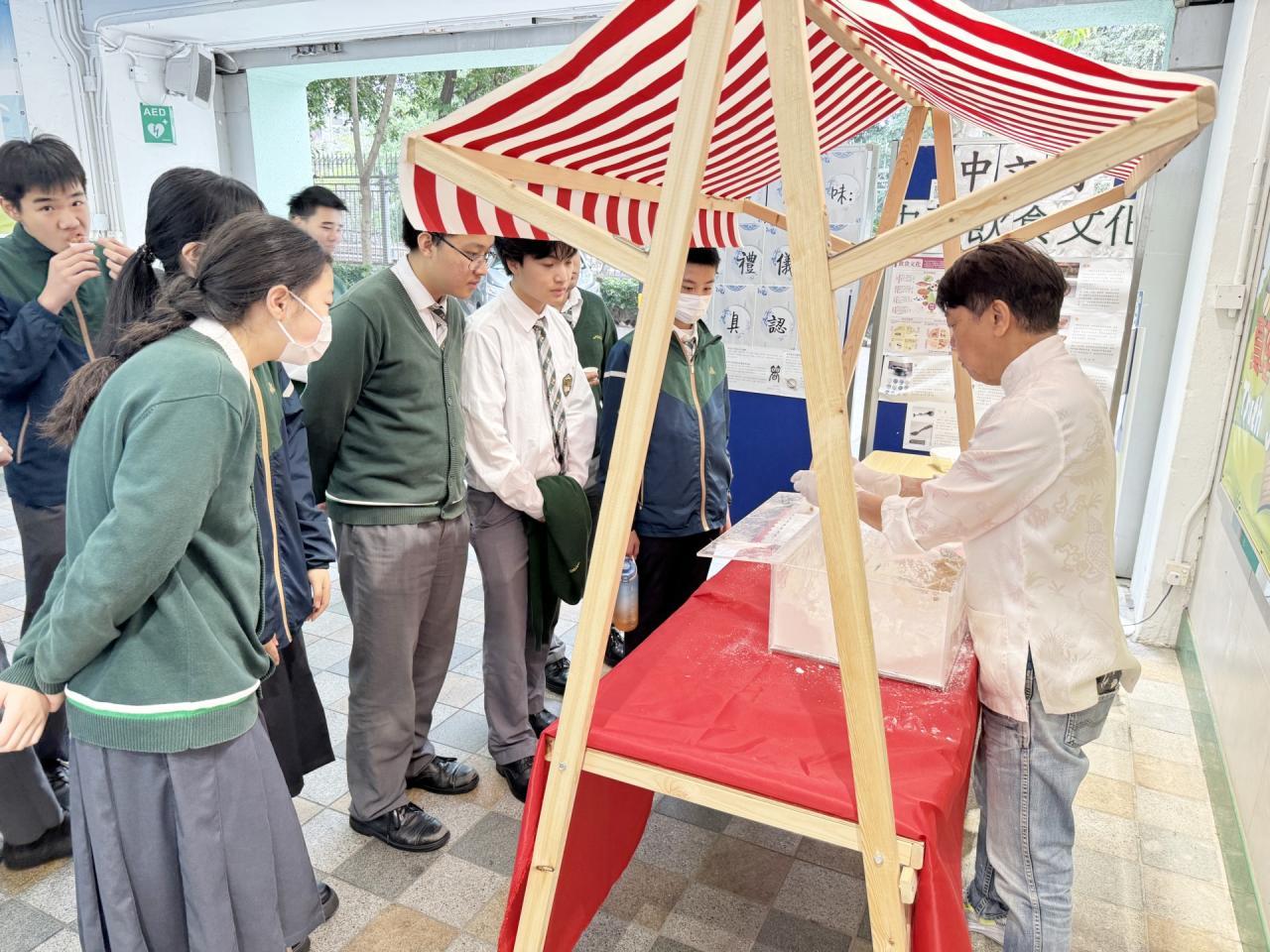 2024-02-29 為了讓同學欣賞中華傳統小食製作過程,中文組於2月29日午膳時間邀請了傳統師傅到校製作龍鬚糖及糯米糍,同學能一嚐即場製作的傳統小食,現場氣氛熱烈,反應踴躍,令同學從傳統小食中體會中華飲食文化。 活動剪影