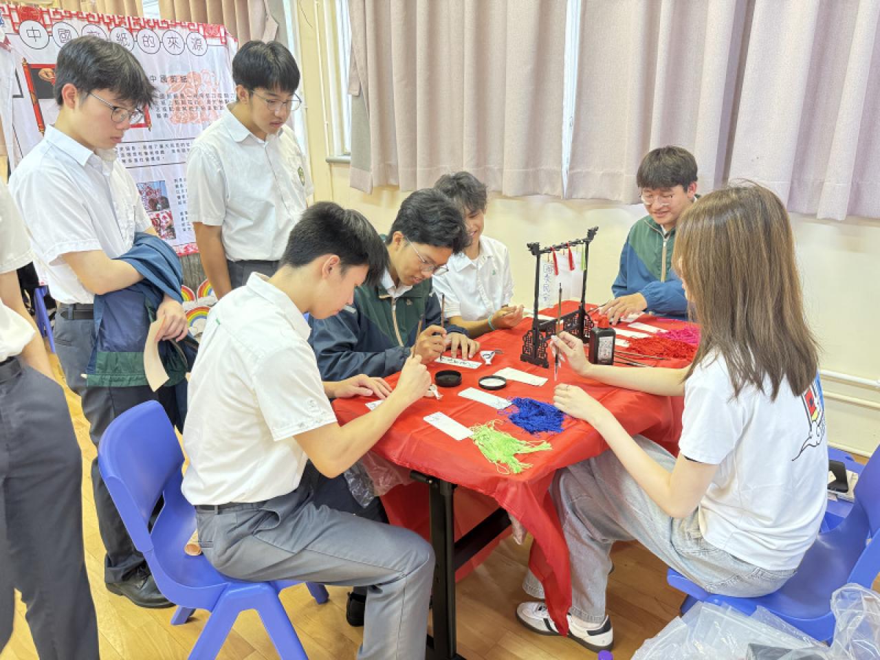2025-07-07 中文組於7月7日舉行中華文化日,活動為同學提供各式各樣的中華文化傳統遊戲及體驗,例如抛沙包、鐵滾環、麪粉公仔和手工剪紙等,亦有加強同學對國家安全及基本法認識的互動遊戲,國安卡牌配對。同學投入參與各個攤位活動,讓同學在互動遊戲和體驗活動中認識中華傳統文化的魅力,藉此加強同學的國民身份認同及文化自信。 活動剪影