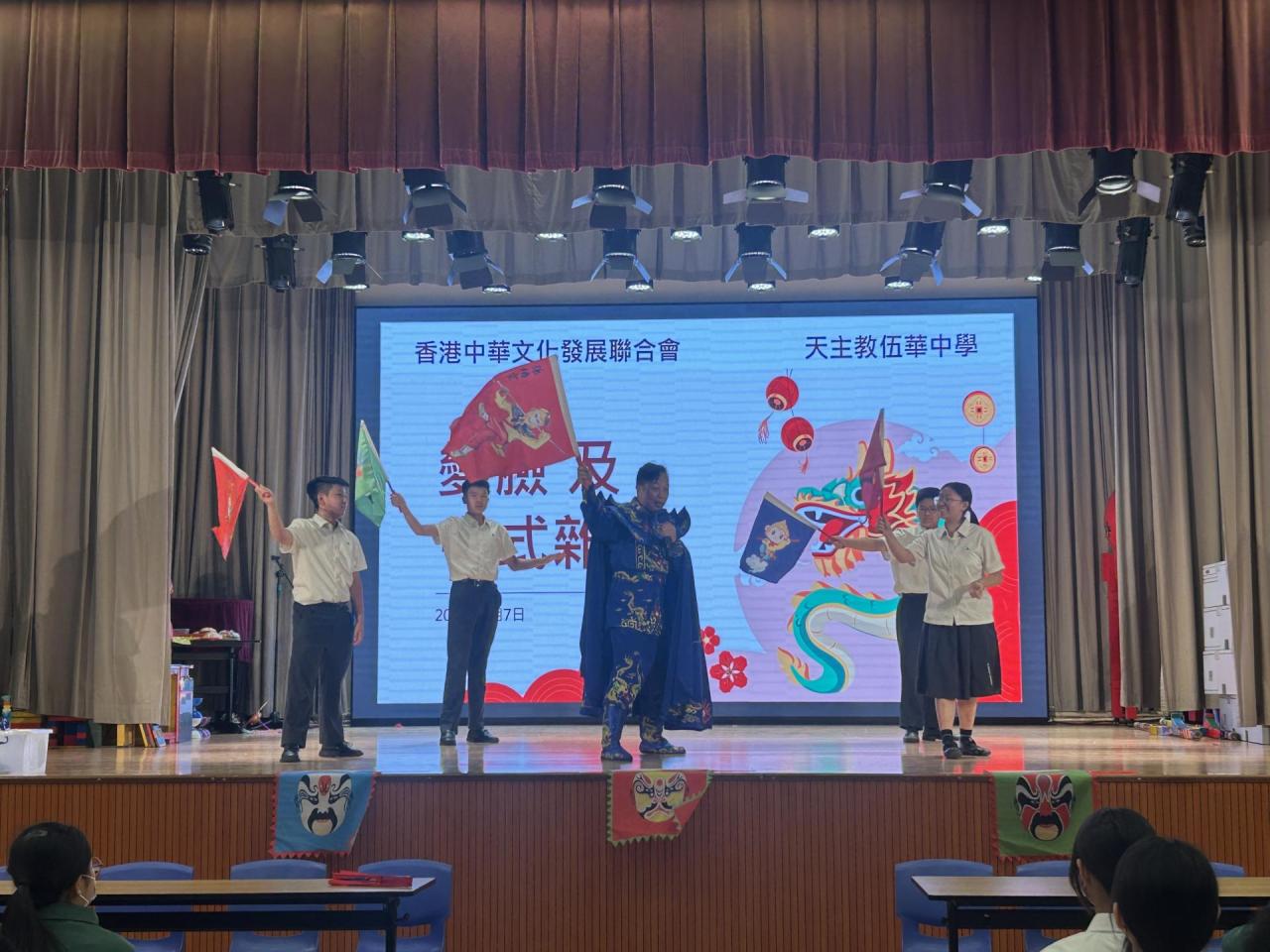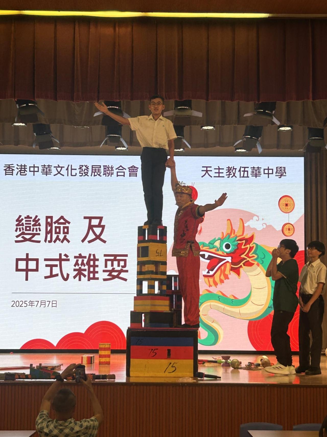 2025-07-11 為提升同學對中華藝術的興趣,以及放鬆考試後心情,中文組於7月7日為中一級同學安排中國藝術表演活動。期間同學們投入參與,觀看變臉及雜技表演時,更是掌聲不絕,而即席進行的「中華藝術表演」班際問答比賽,亦令禮堂內充滿緊張氣氛。整體來說,是次表演活動,讓同學們感受到中華藝術的魅力,能夠從不同形式了解中華藝術文化。 活動剪影