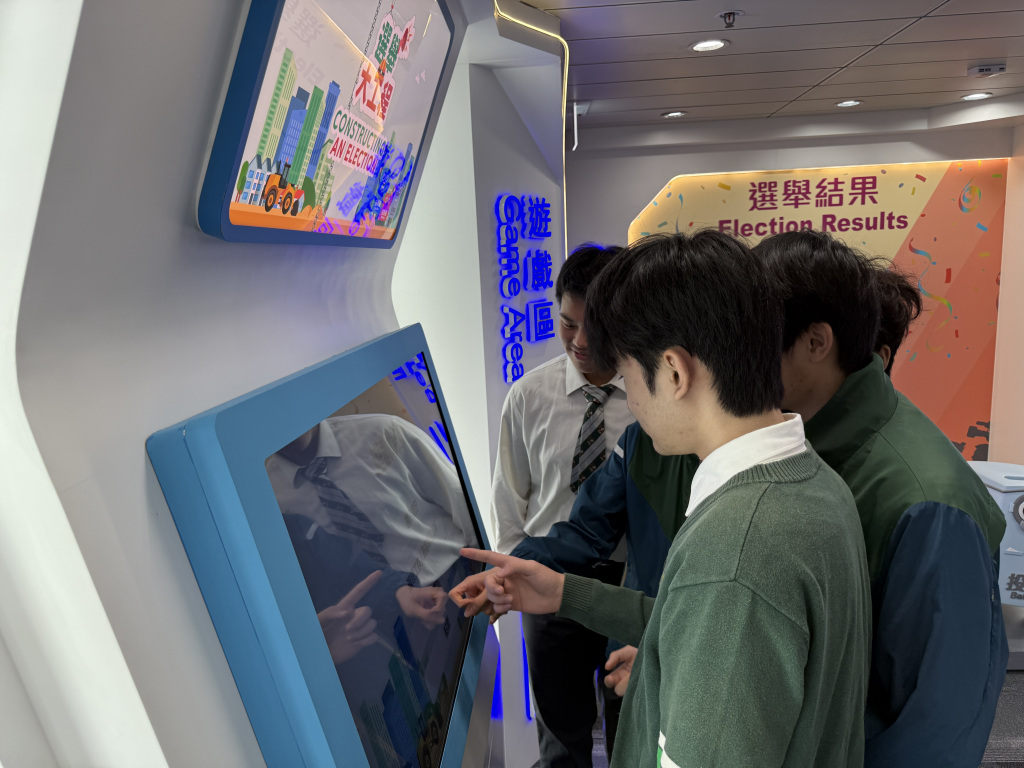 《憲法》和《基本法》學生校園大使於11月22日參觀選舉資訊中心,選舉事務處人員講解各項選舉資訊,包括香港特別行政區的選舉制度、選管會職能、投票過程及點票程序,讓他們對籌備整個選舉的過程有更深入的認識。同時,大使亦參與了選舉資訊中心內不同的互動遊戲,活動加強他們對國民身分的認同及加深他們的公民責任。