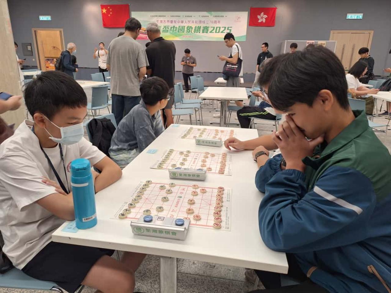 2025-10-01 為慶祝中華人民共和國成立76周年、弘揚國粹及推廣象棋文化,荃灣象棋會舉辧了國慶盃中國象棋賽2025,今年本校有1名老師及2名同學分別參與公開組及青年組賽事。今年賽事強度甚高,青年組的棋手之中,部分是剛參與第19屆世界象棋錦標賽,實力非凡。本校學生亦無畏無懼,以學習的心態面對賽事,表現積極。 活動剪影