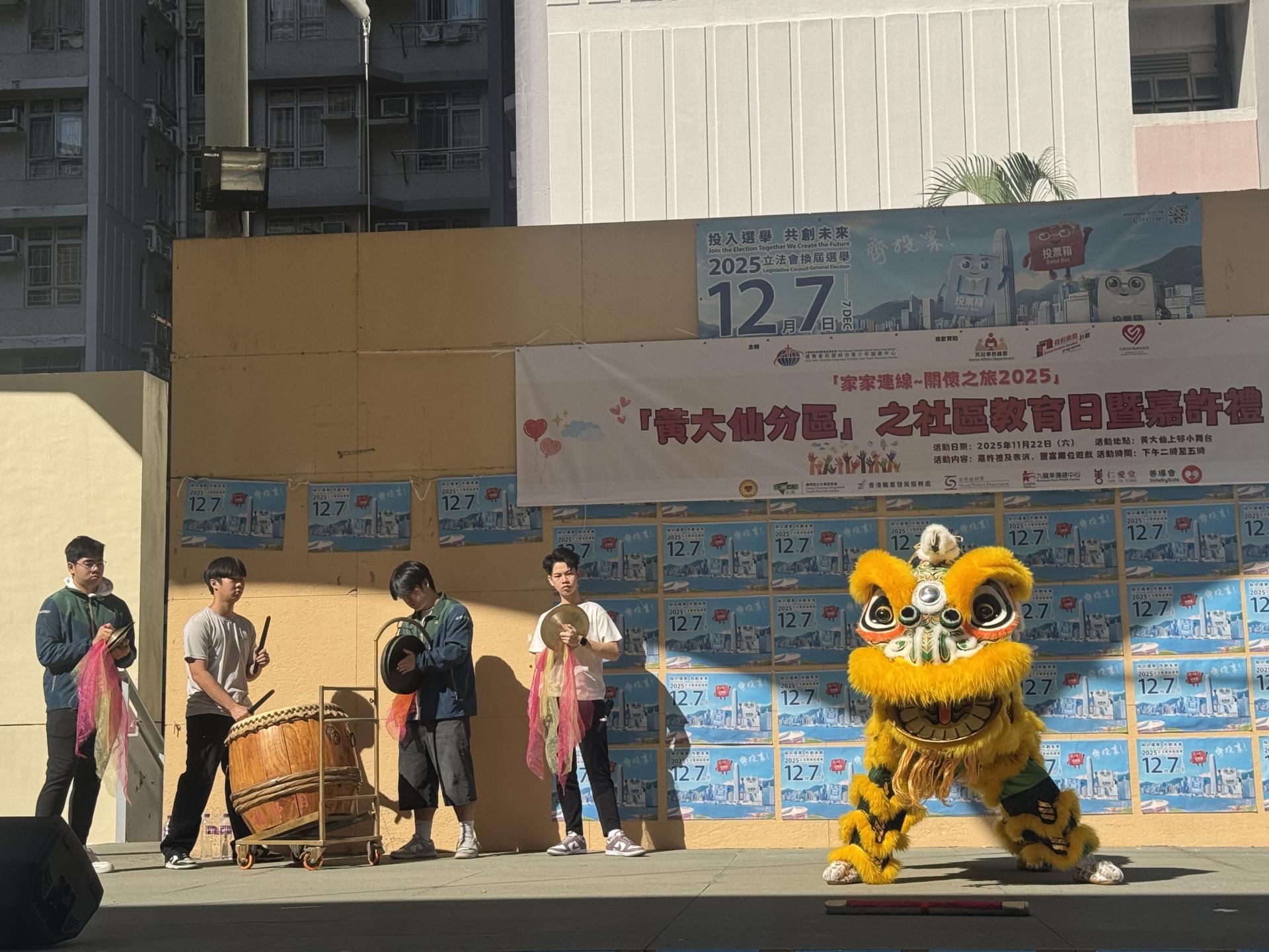2025-11-22 本校「伍華龍獅隊」獲邀於「黃大仙分區之社區教育日暨嘉許禮」中擔任表演嘉賓。學生透過精彩的龍獅匯演,展現出高度的紀律與團隊默契。 這不僅讓學生身體力行服務社區、傳承中華文化,更是全人發展中「體育」與「群育」的最佳實踐。 活動剪影