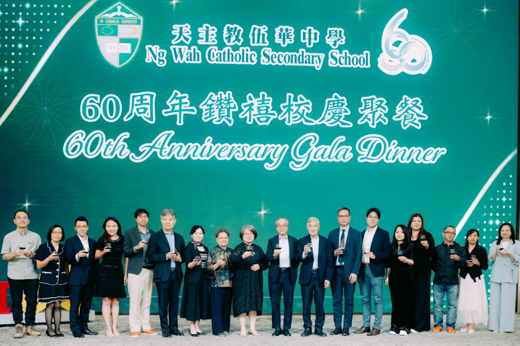 為了慶祝六十周年校慶,本校於2025年10月25日假九龍灣宏天廣場百樂金宴國際宴會廳舉行晚宴。晚會吸引了校內師生、校友及嘉賓踴躍參與,共同回顧學校的輝煌歷程。活動在校長的致辭中拉開序幕,校長回顧了學校自創辦以來的成就及對社會的貢獻,並鼓勵大家繼續攜手前行,繼往開來,創造更多卓越成就。