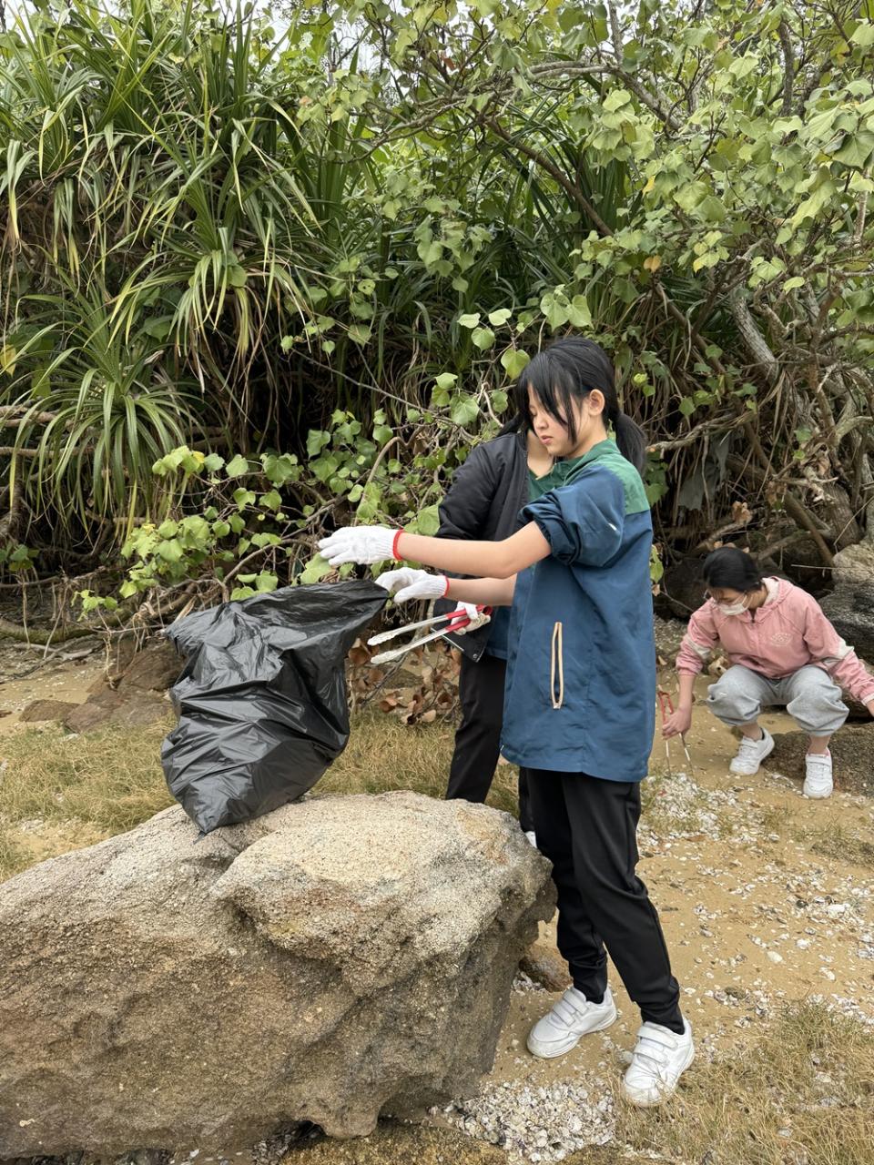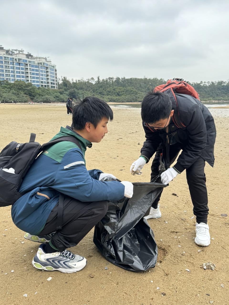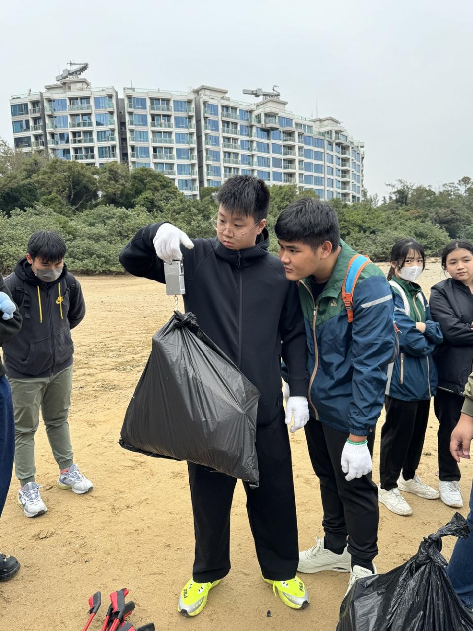 同學分組搜索和清理垃圾。看似乾淨的海灘,在仔細搜索下還有不少人為的垃圾,例如塑膠和玻璃。同學熱心積極參與,學到保護自然環境的重要性,獲得李博士的讚賞。