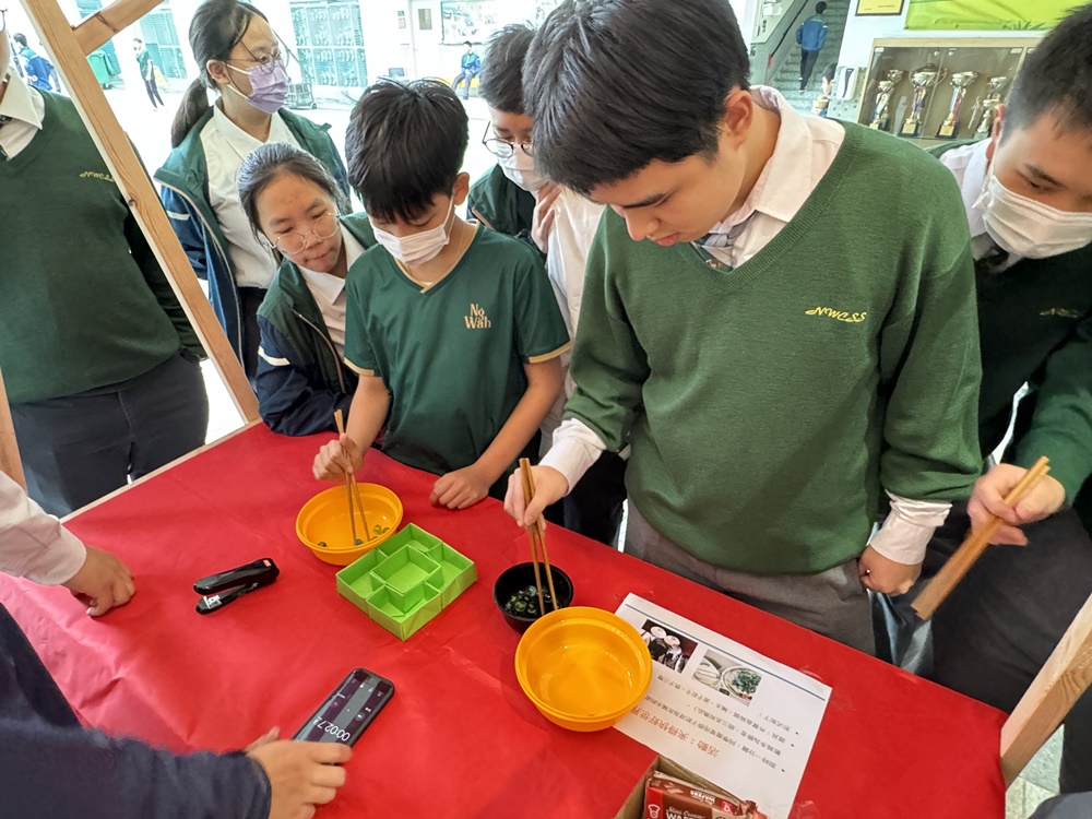 中文科於2月28日午膳時段為同學們舉辦了「認識中國飲食禮儀與器具」的活動,透過展板與攤位遊戲向同學們講解日常用餐時應注意的各種規矩,及其背後蘊含的文化意義。