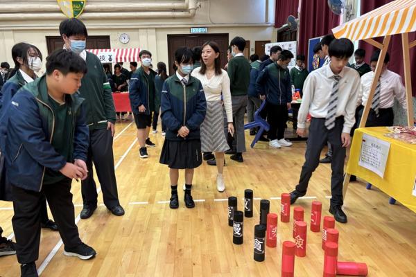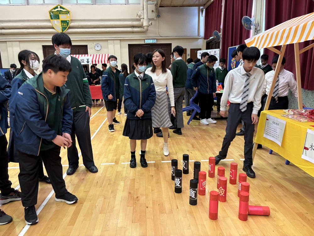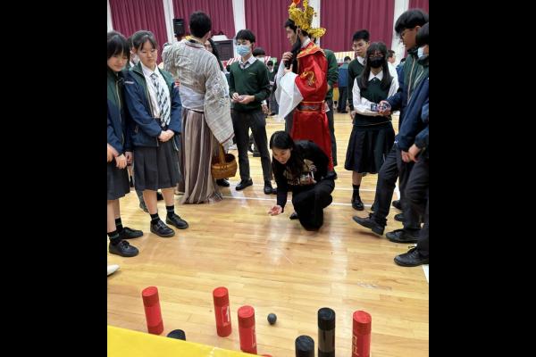 2024-02-02 中文科於2月2日「師生同樂迎新歲」中舉辦木射傳統遊戲。透過木射遊戲讓同學體驗古人的活動,及認識「仁、義、禮、智、信、溫、良、恭、儉、讓」十種中國傳統的美德,當日同學反應熱烈,踴躍參與。