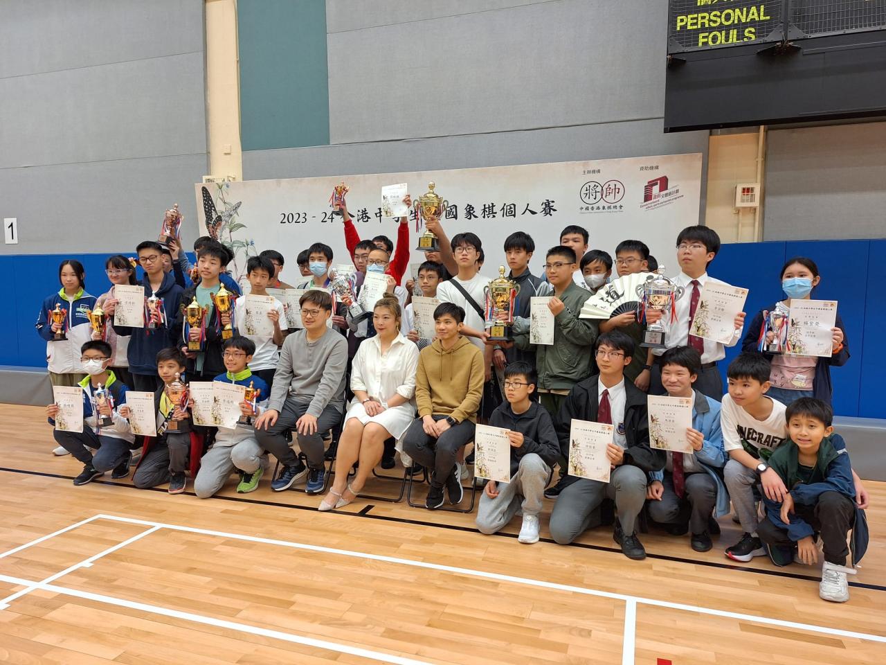 2024-05-07 為宏揚國粹,推廣中國象棋,本校有5名中一同學參與由香港象棋總會舉辦的2023 - 24全港中學生中國象棋個人賽。賽事分七輪進行,隊員積極沉穩應戰。比賽競爭非常激烈,直至最後一輪完結才能夠分出勝負。在隊員共同努力下,最終獲得初中組團體殿軍。其中一名女隊員更獲得初中組女子亞軍。 初中隊員 隊員認真拼搏 初中組團體殿軍 初中組女子亞軍 大合照