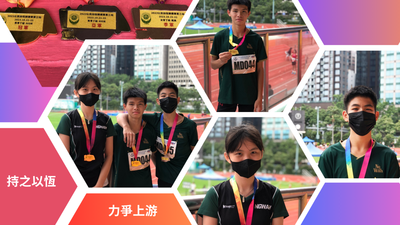 黎同學及李同學於男子青年丁組800米賽事中,分別獲得冠軍及亞軍。鄭同學出戰女子青年丁組跳高賽事獲得季軍。同學們努力爭取參賽經驗,視每次爭標機會為自我完善的過程,令全校引以為傲。