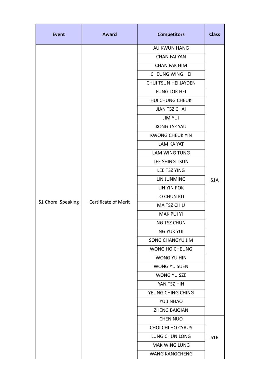 • S6 Bible Speaking - Certificate of Merit & Proficiency