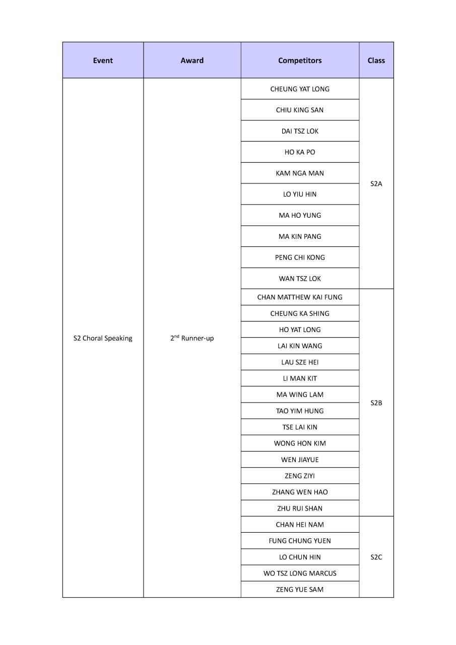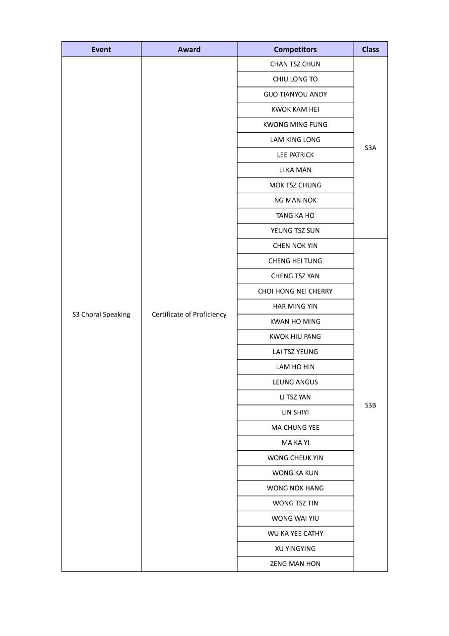 S6 Bible Speaking - Certificate of Merit & Proficiency